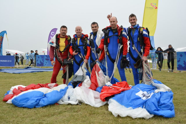 Družstvo parašutistů Dukly Prostějov – přesnost přistání: Jiří Gečnuk, nrtm. Miloslav Kříž, nrtm. Bonifác Hájek, prap. Oldřich Šorf, Hynek Tábor
