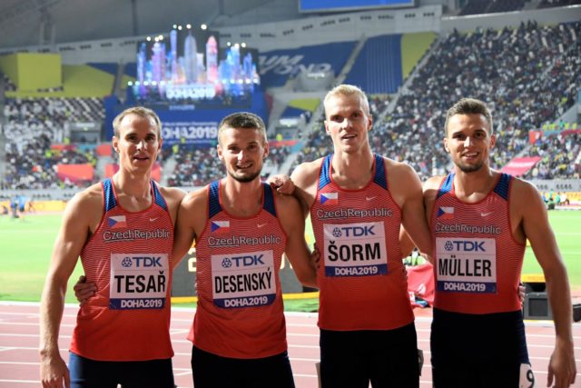 Česká čtvrtkařská štafeta ve složení Jan Tesař, Michal Desenský, Patrik Šorm a Vít Müller nedokázala postoupit do další fáze šampionátu. Ve svém rozběhu skončila na nepostupovém 6. místě.